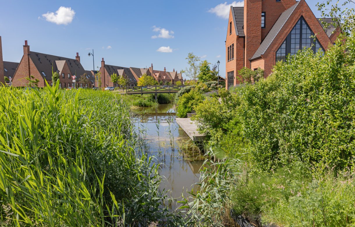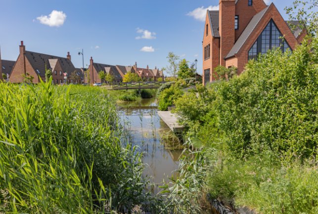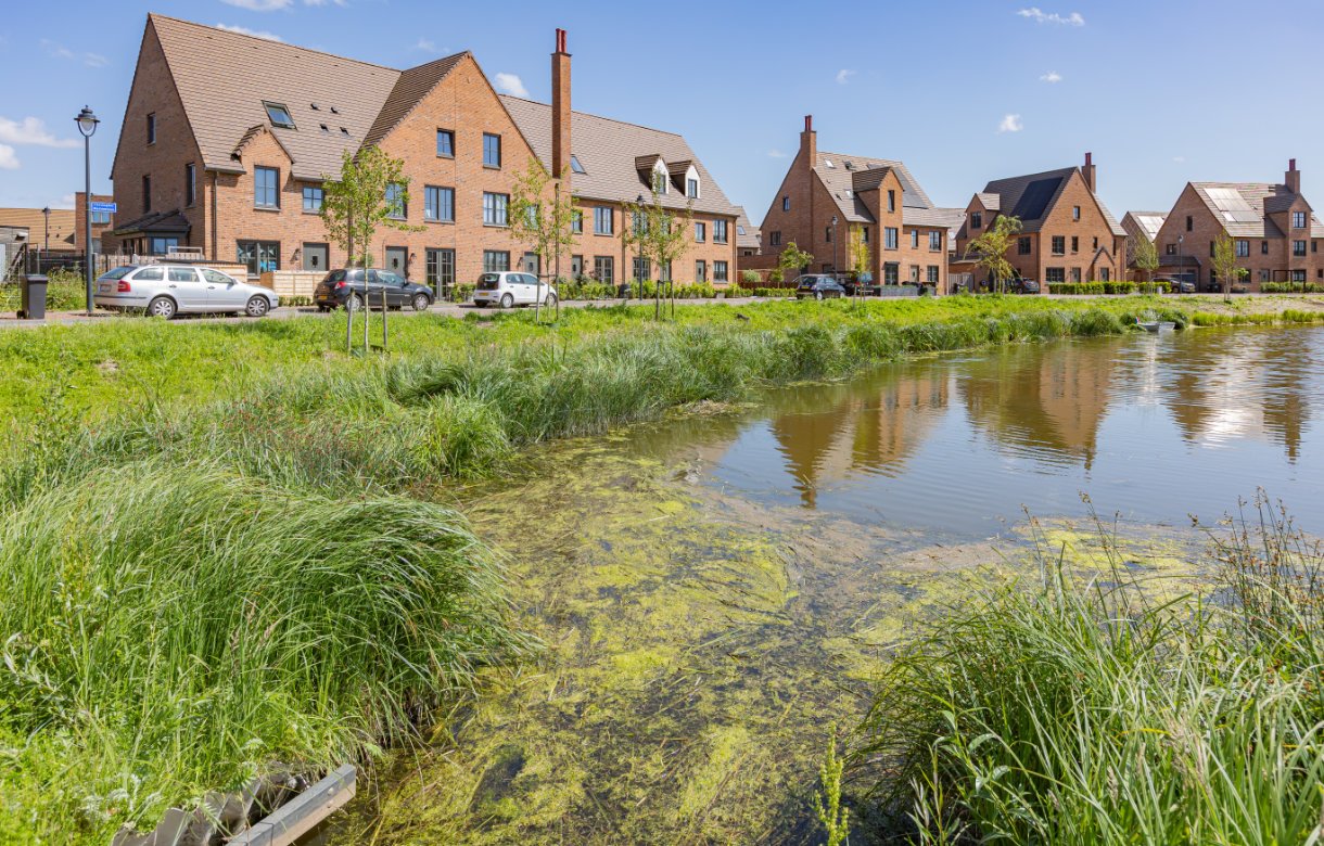 Ook hier betrof het een nieuwbouw locatie, waar alle kale oevers in een mum van tijd omgetoverd zijn in een biodiverse groene omgeving waar mens en dier van kunnen genieten.