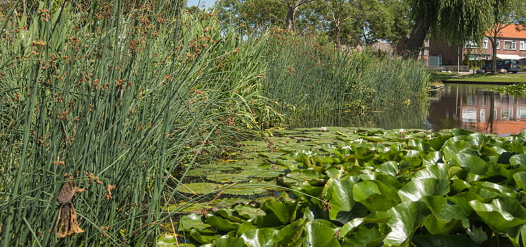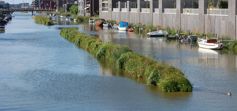 Aqua-Flora mats are often used to create ecological connectivity zones, to quickly vegetate shores in new construction locations, and generally to enhance (urban) waters.