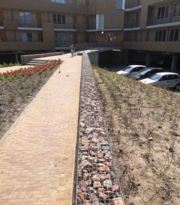 Facade and walls constructed from gabion walls also serve as plantable “Ecowalls.” A small, rocky biotope is a rare ecosystem and can provide specialized flora and fauna with a habitat. This multifunctionality also demonstrates efficient use of space and is therefore a thoughtful approach to another scarce resource: space. In this way, gabion walls contribute to a sustainable and green solution for various ecological needs.